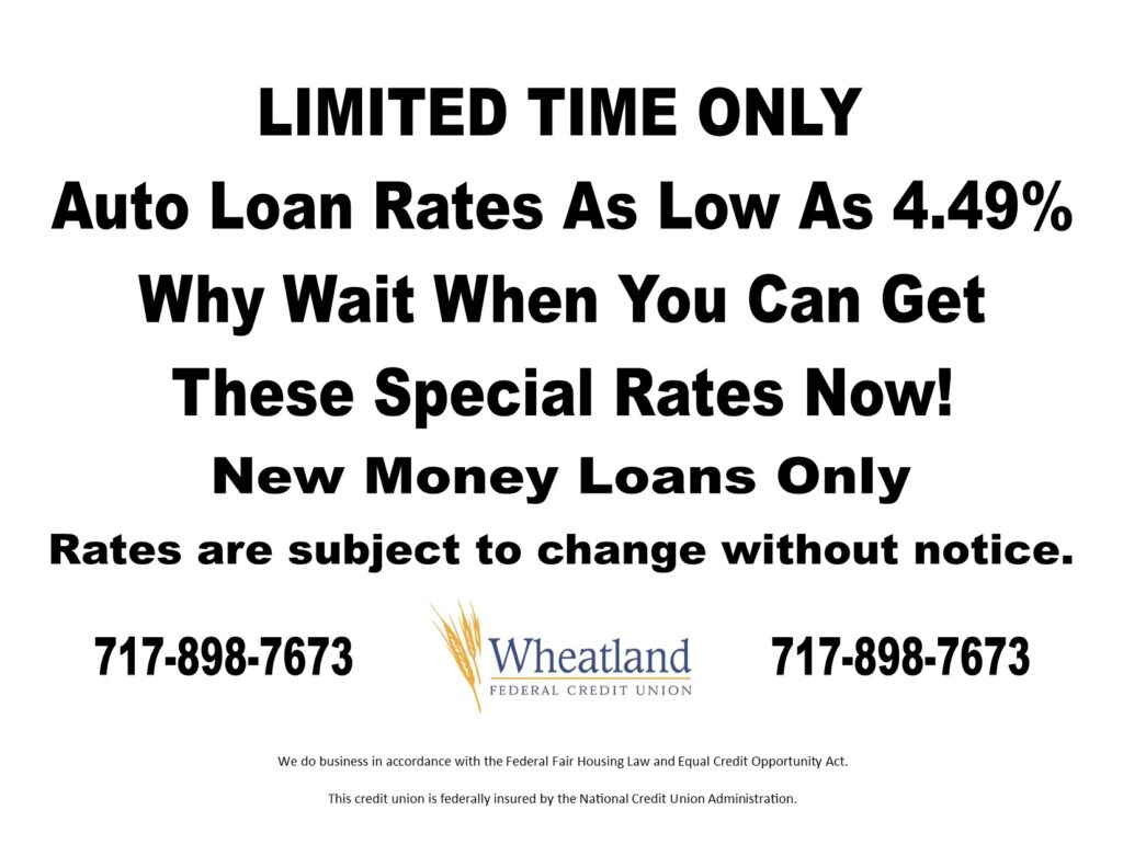 You can apply for your vehicle loan by stopping into one of our convenient locations or calling us at 717-898-7673 option #3 to apply with a loan officer!