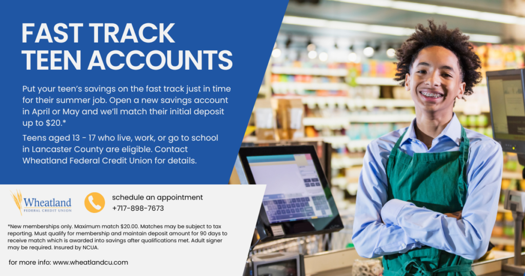 - Young Adult or College Rewards VISA credit cards available too!